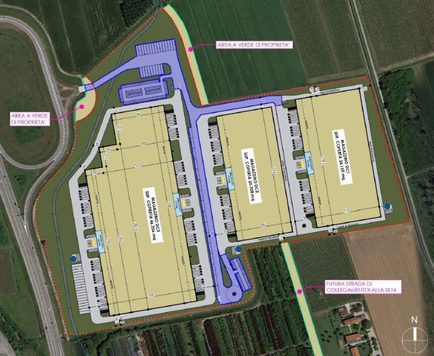 Immobili logistici di nuova realizzazione all'uscita del casello "Latisana" lungo l'Autostrada A4, in posizione di grande visibilità.