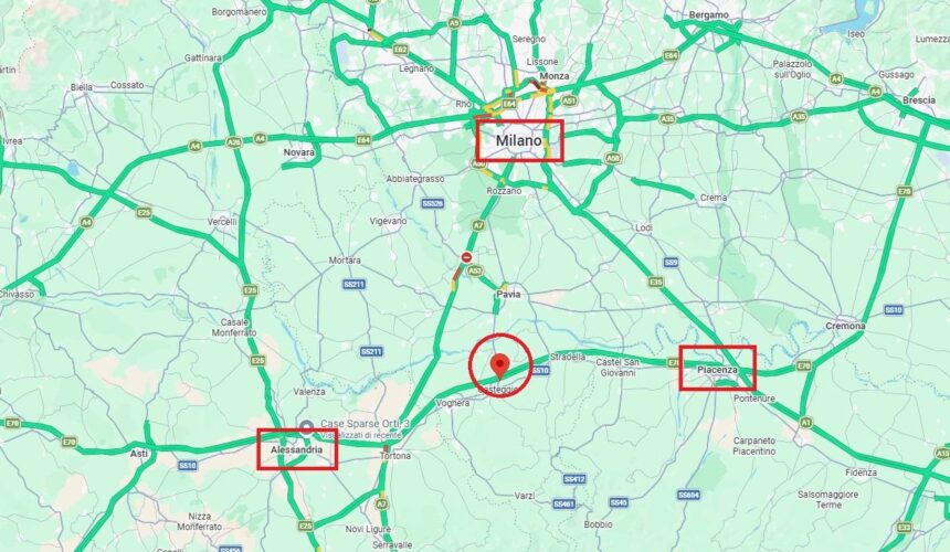 Il magazzino si trova fra Alessandria e Piacenza, e a breve distanza dalla città di Pavia.