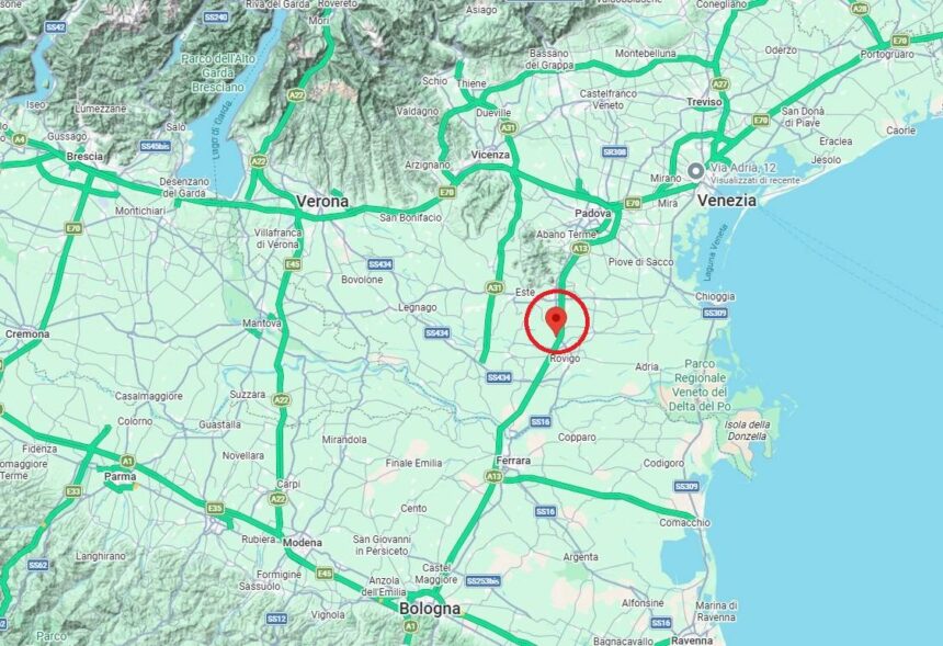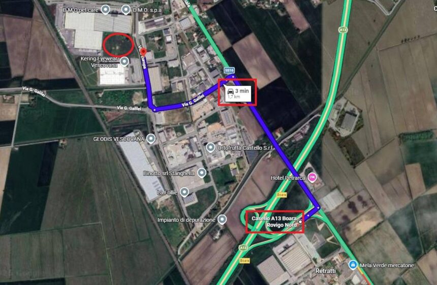 Immobile logistico nel comune di Vescovana, fra le città di Padova e Rovigo, a soli 3 minuti dal casello di Boara Rovigo Nord dell'Autostrada Bologna-Padova (A13).