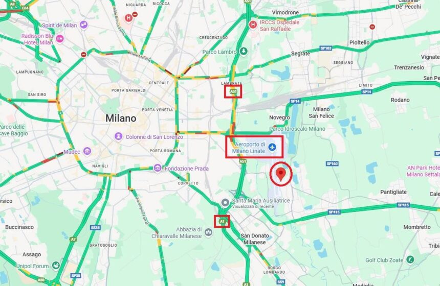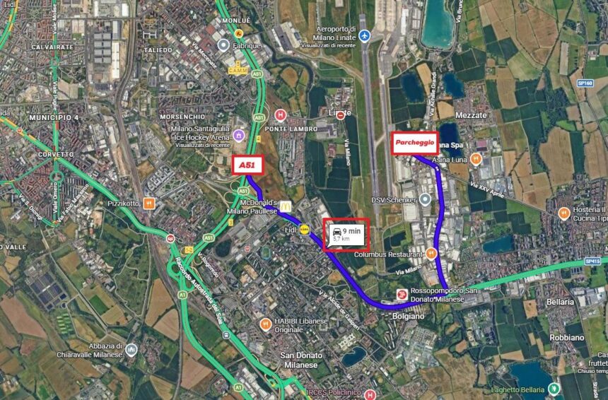 Piazzale adiacente all'aeroporto di Milano Linate e situato a pochi minuti dall'imbocco della Tangenziale Est di Milano (A51).